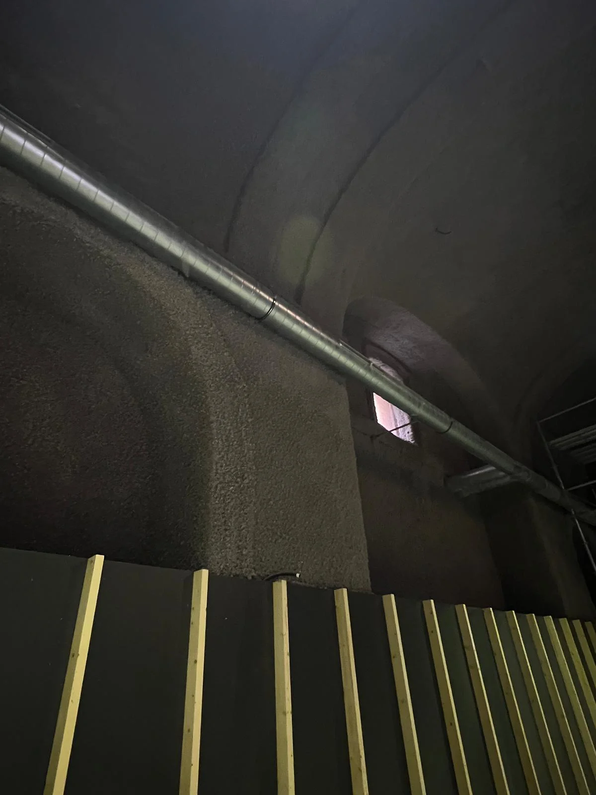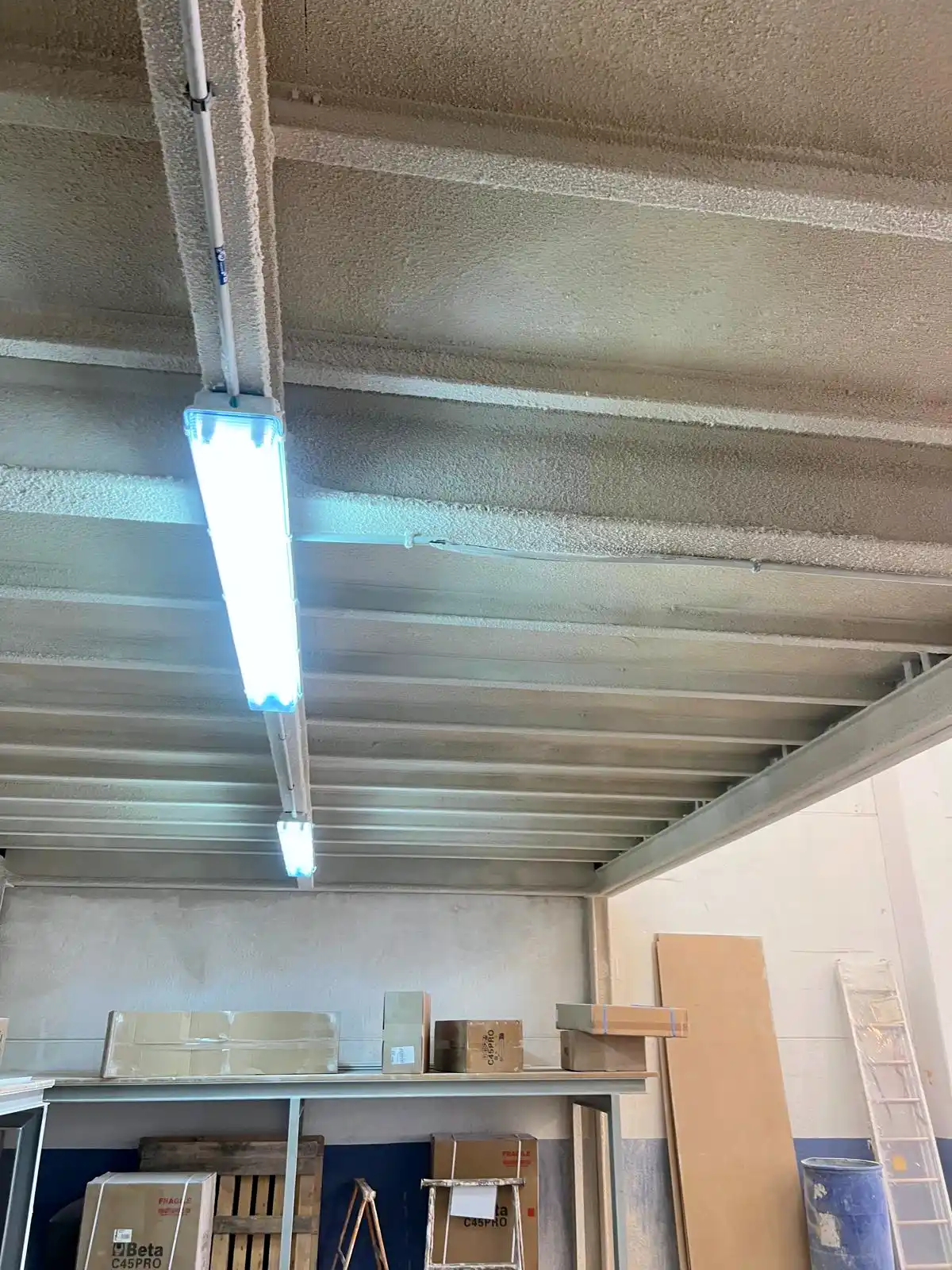 Se recubrió toda la estructura con lana de roca para cumplir normativa contra incendios. El trabajo se ejecutó en un solo día sin parar la actividad.