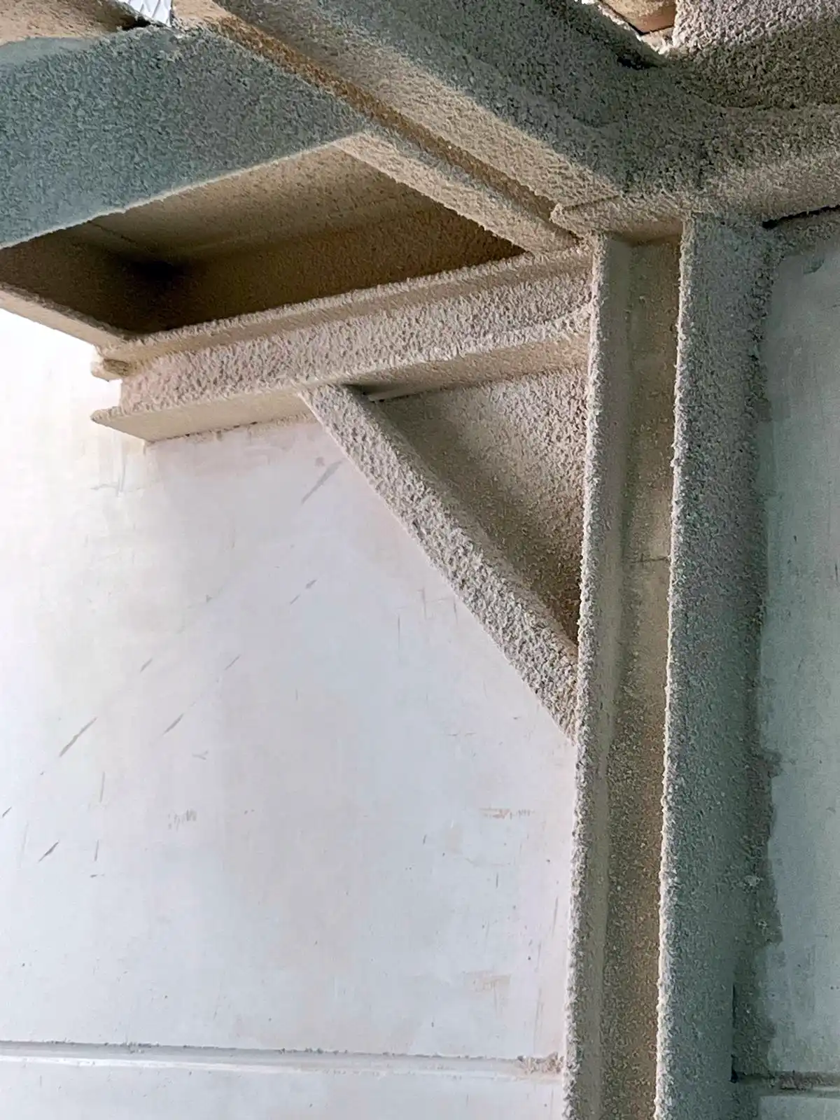 Utilizamos proyectado de lana de roca PERLIWOOL, que actúa como recubrimiento ignífugo para estructuras metálicas, forjados o conductos. Estos tratamientos ralentizan la propagación del fuego y permiten ganar un tiempo vital en caso de emergencia.